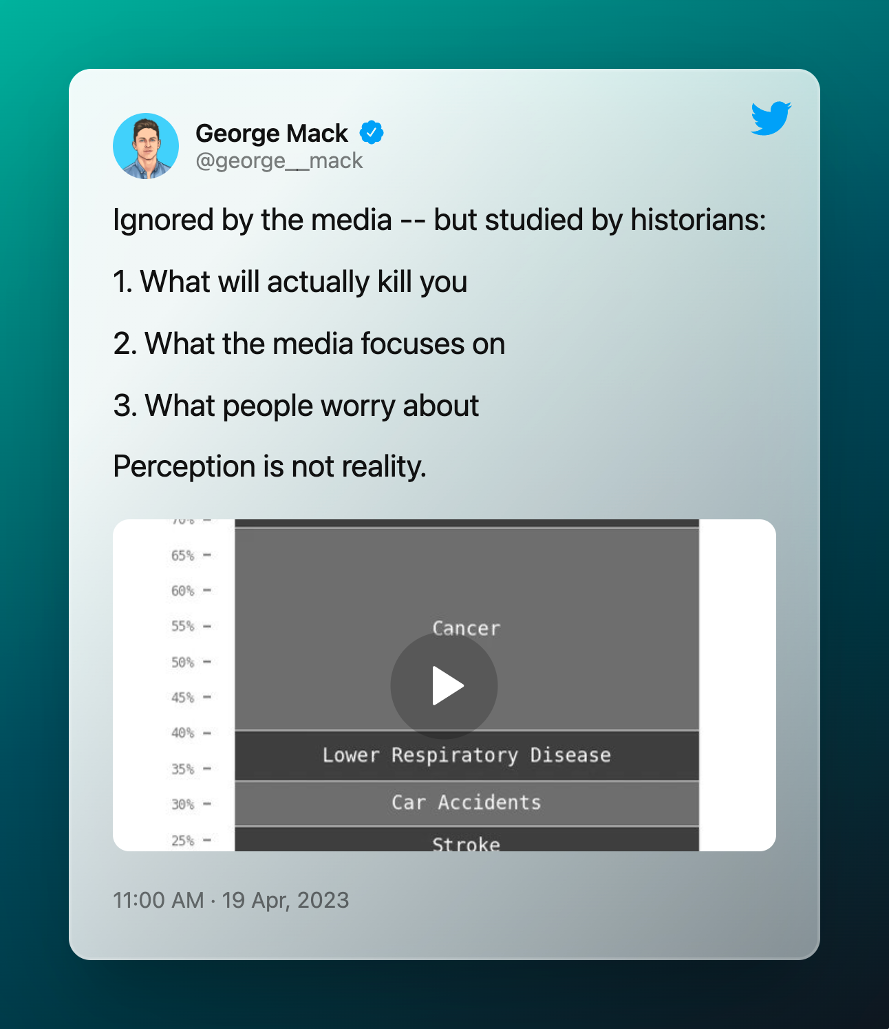 Media vs Our Worries vs Reality • 🔗 / George Mack’s Tweet /
