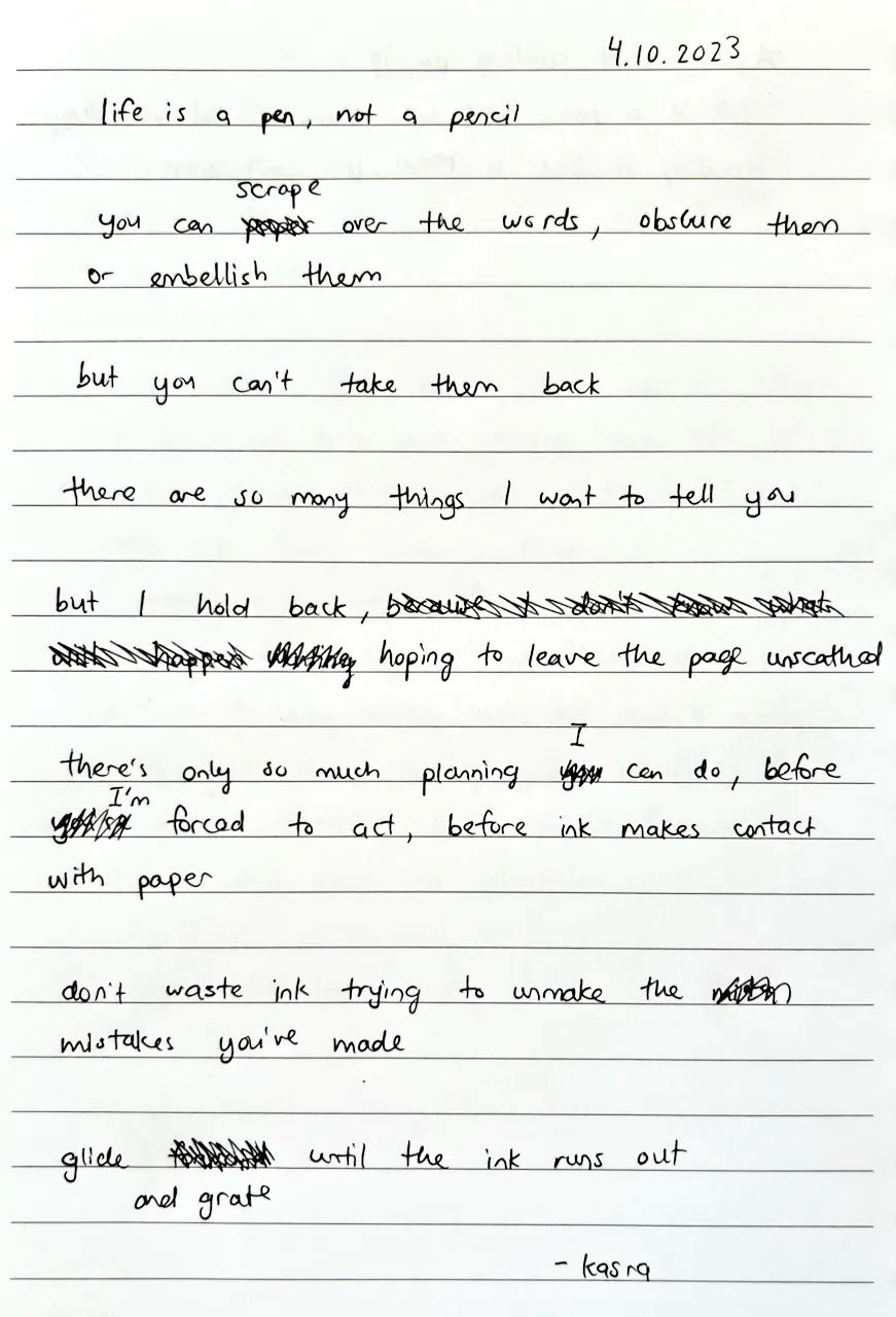 Life is a Pen, Not a Pencil • 🔗 / Bits of Wonder / No bitterness, no sneering, no cynicism /