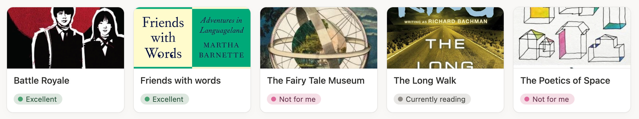 By default, properties stack on top of one another, but in the database layout settings we can also bring them in line so they read one after another.
